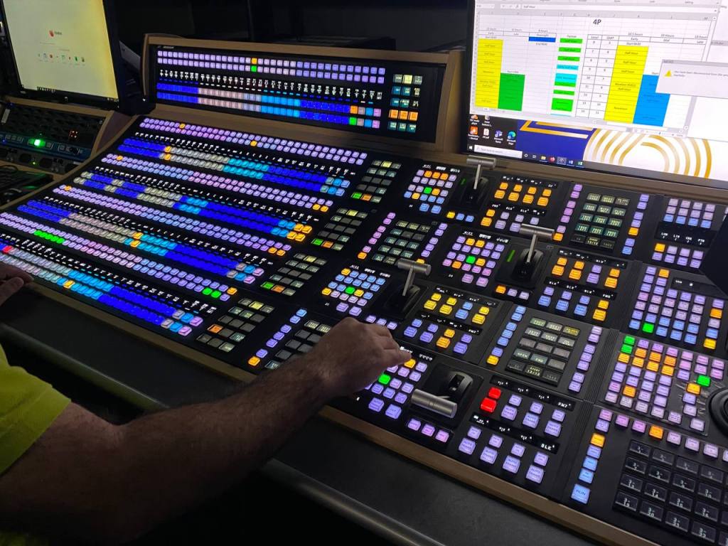 Zooming in, this snapshot shows an individual operating on a vision mixer. A vision mixer must be highly attentive to their work as they are directly responsible for each shot in a broadcast. They should be able to make split second decisions when deciding the next video shot to insert, while also trying to maintain the cohesiveness and the overall storytelling of the broadcast or program. Whilst every role in a gallery is crucial, the vision mixer is the one who truly brings the narrative to life.
